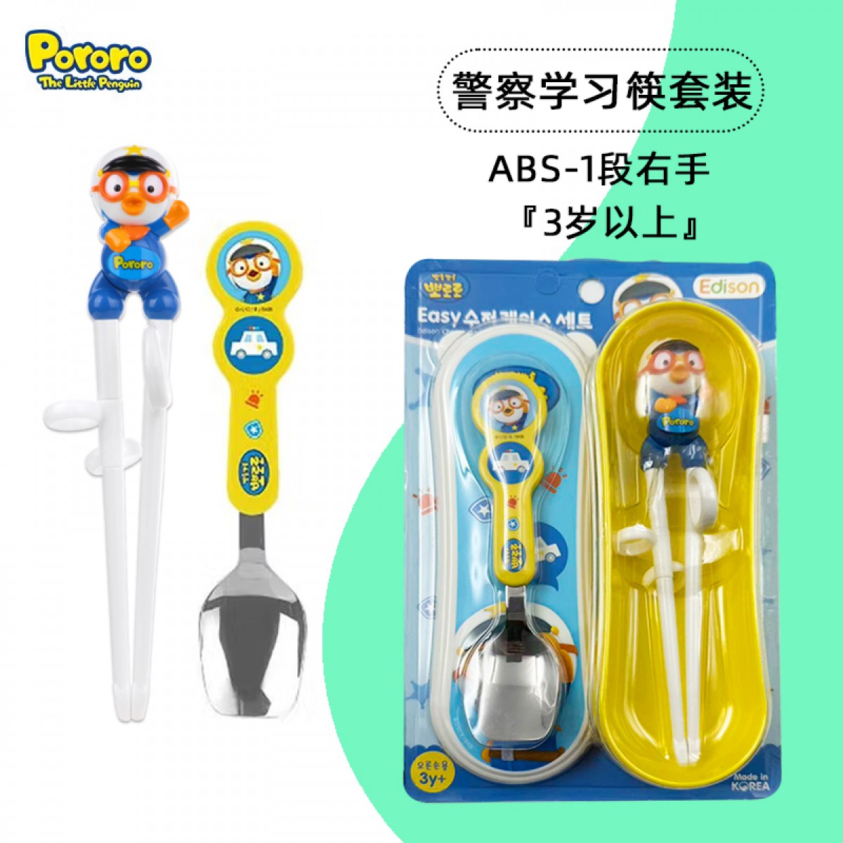 商品名称:韩国 啵乐乐 Pororo 警察 简易勺筷带盖套装