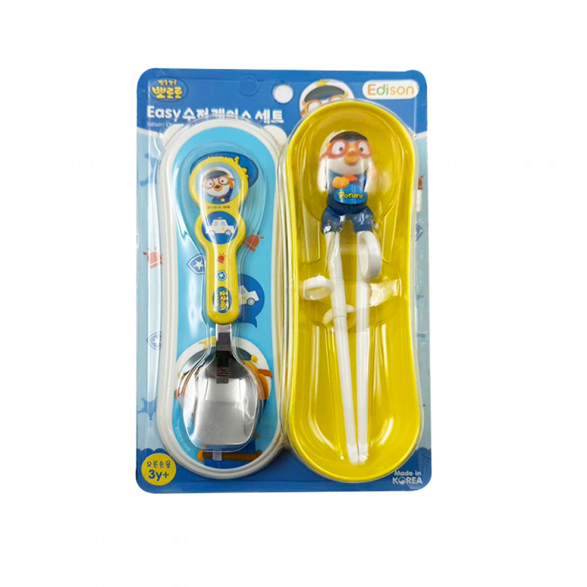 韩国 啵乐乐 Pororo 警察 简易勺筷带盖套装