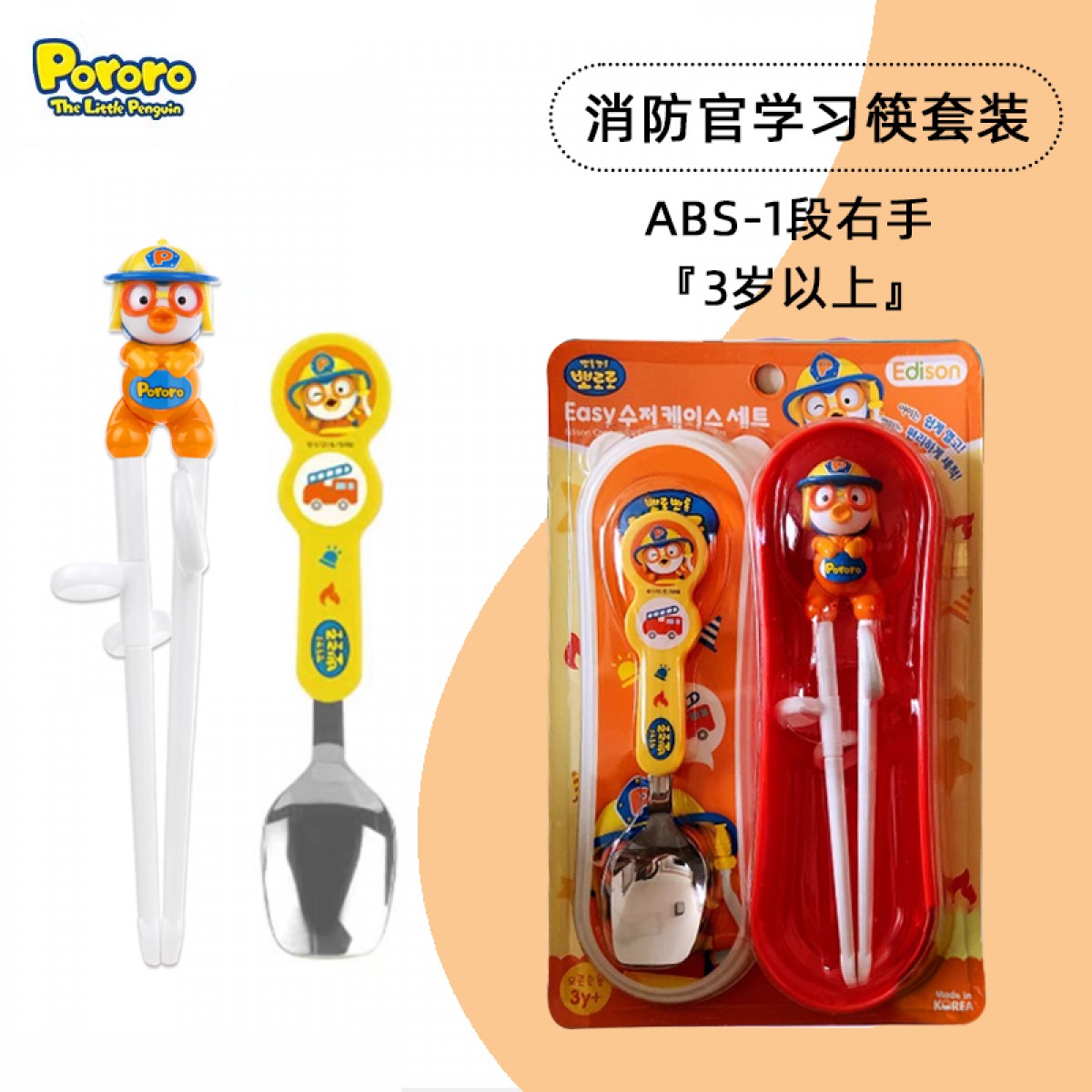 商品名称:韩国 啵乐乐 Pororo 消防官 简易勺筷带盖套装
