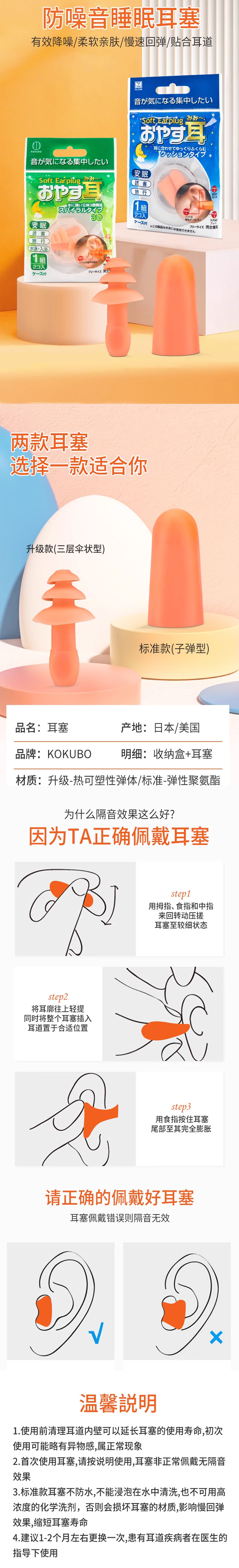 商品名称:日本 小久保KOKUBO 睡眠耳塞 三层伞状型