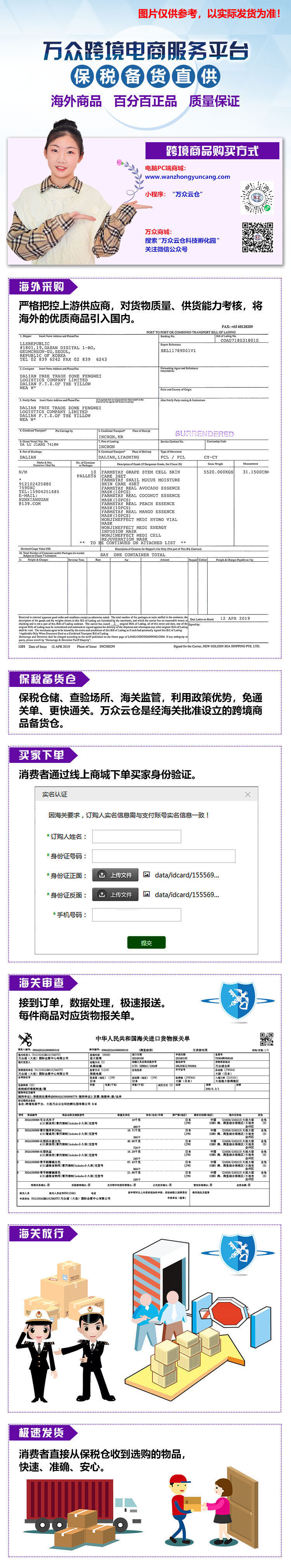 万众跨境温馨提示:根据海关要求购买跨境商品需完成实名认证,购买正品跨境商品可通过海关系统个人额度系统查询。保税直供、安心便捷!