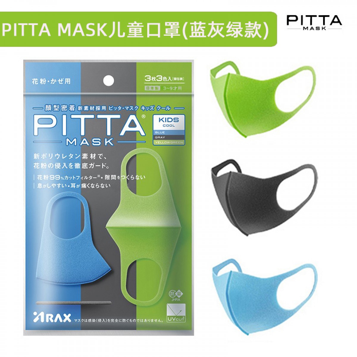 商品名称:日本 PITTA MASK儿童口罩(蓝灰绿款) 儿童款 3枚/袋