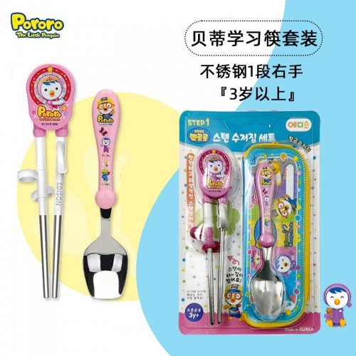 韩国 啵乐乐 Pororo 贝蒂 不锈钢勺筷套装 右手用