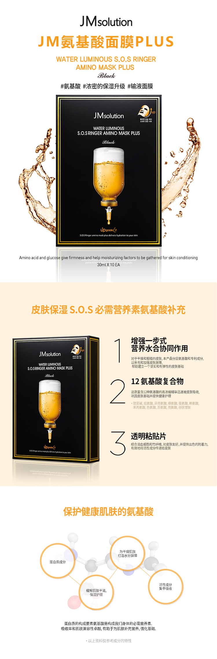 商品名称:秒杀!JM氨基酸面膜PLUS 10片 营养补充 保质期至2025-10-19