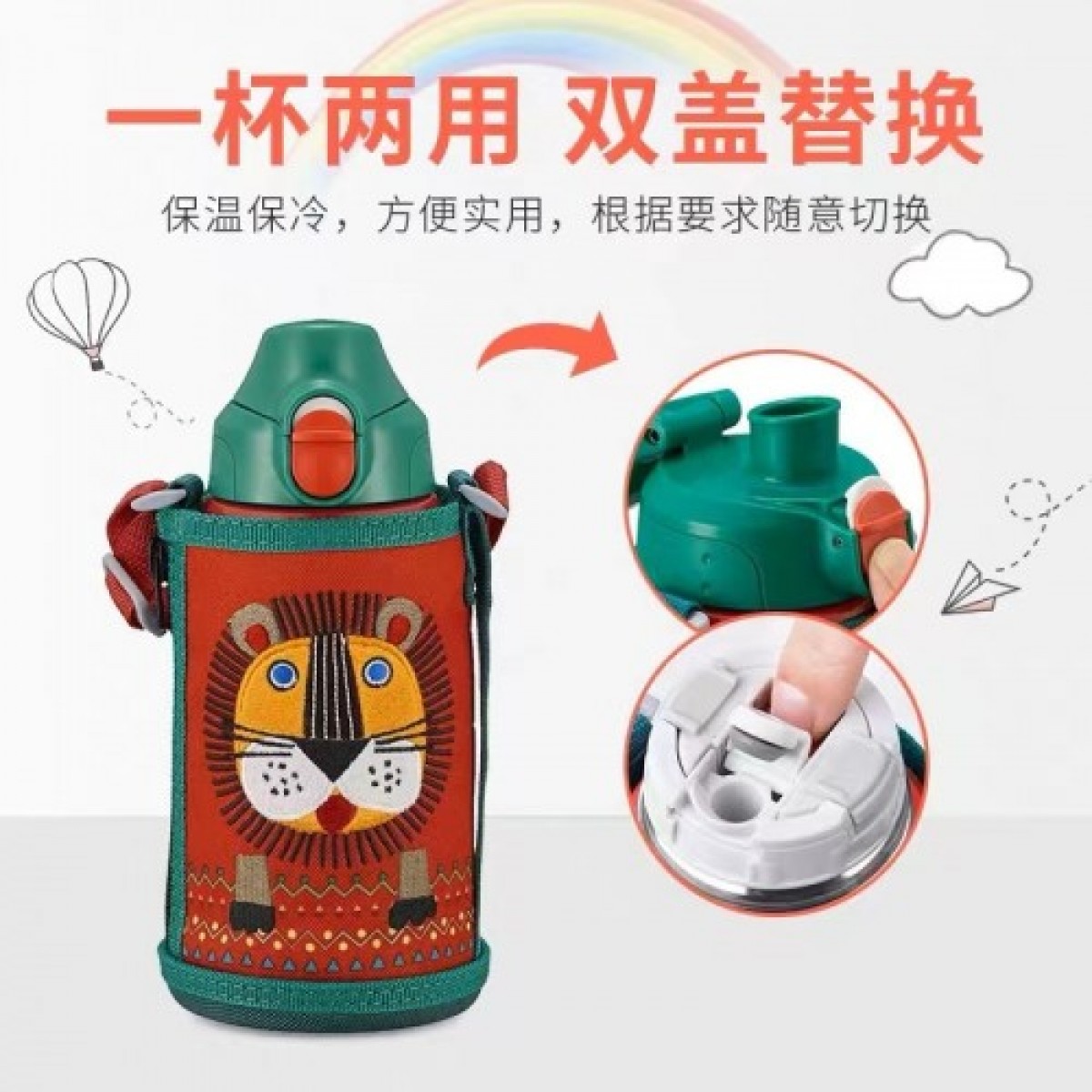 日本TIGER虎牌不锈钢儿童保温保冷杯狮子杯600ml