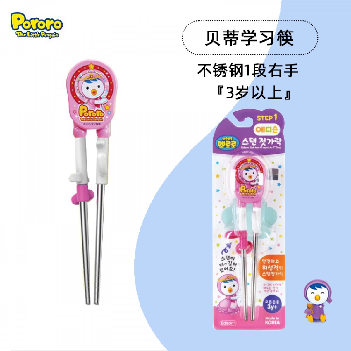 商品名称:韩国 啵乐乐 贝蒂不锈钢1段学习筷-右手3岁以上