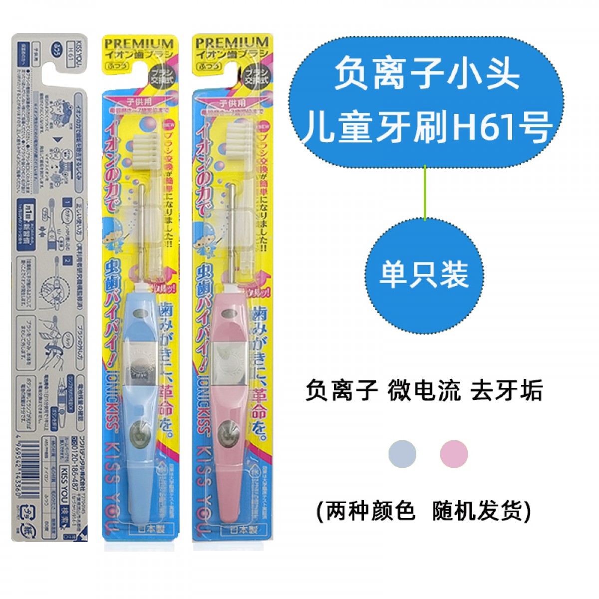 商品名称:日本 KISS YOU儿童牙刷H61适用于0~7岁(颜色随机)