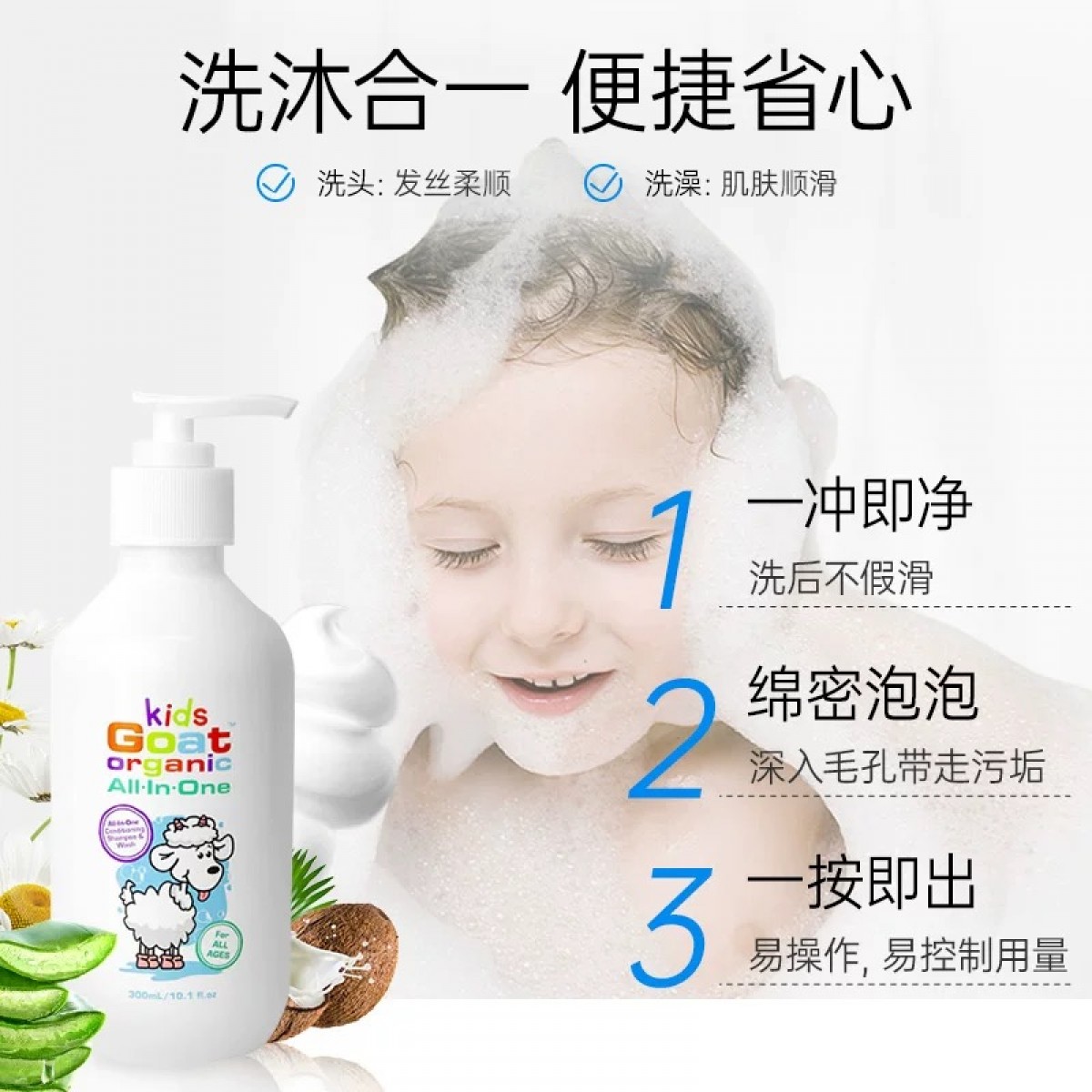 商品名称:澳大利亚 Goat儿童婴儿山羊奶有机洗发沐浴二合一 300ml